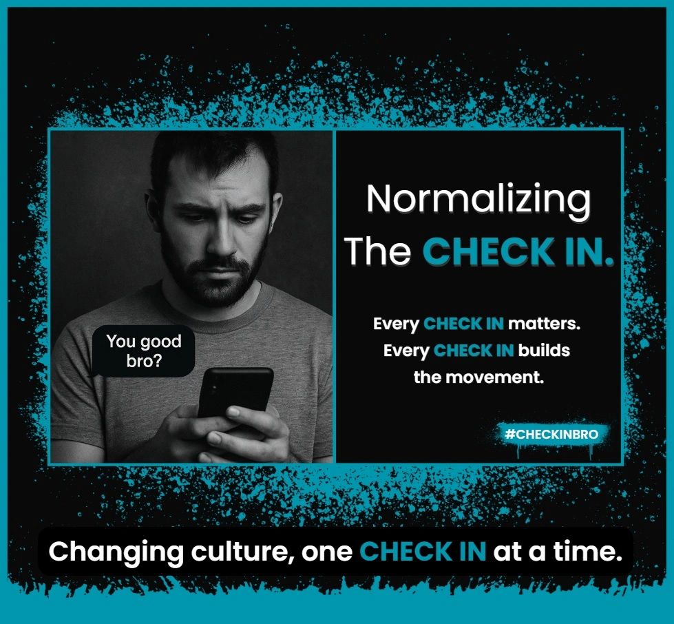CHECK IN BRO is here to highlight that support, connection, and a reminder that someone cares, can make a difference.